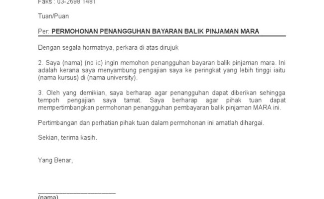 Contoh Surat Penangguhan Bayaran Balik Mara Pdf